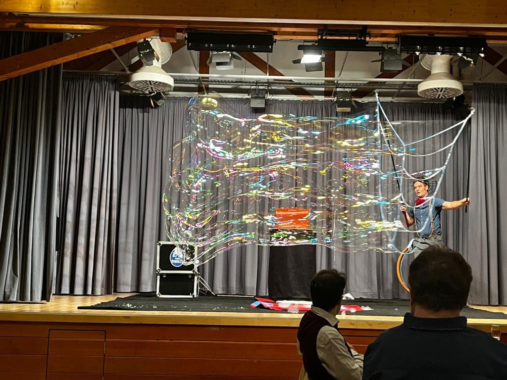 Das Abendprogramm war sehr abwechslungsreich und brachte die rund 60 Gäste das ein oder andere Mal zum staunen. Norbert Mergel umrahmte den Abend mit seinem Tenor Saxophon auf stilvolle Weise. Der Seifenblasenkünstler Prof. Bubbles brachte etwas Witz und überraschende Kreationen mit. Abgerundet wurde dies von den Mädchen der rhythmischen Sportgymnastik des TVG, die mit harmonischen Bewegungen und einer ausgefeilten Choreographie zum staunen brachten. Für das leibliche Wohl der Festgesellschaft war mit leckerem essen der Metzgerei Rückert gesorgt, dazu gab es ein vielfältiges Salatbuffet vorweg und eine ebenso vielseitige Auswahl an Desserts von den Musiker*innen. Ein ganz herzliches Dankeschön an dieser Stelle an alle Mitwirkenden, die dazu beigetragen haben, diesen Abend zu etwas Besonderem zu machen.